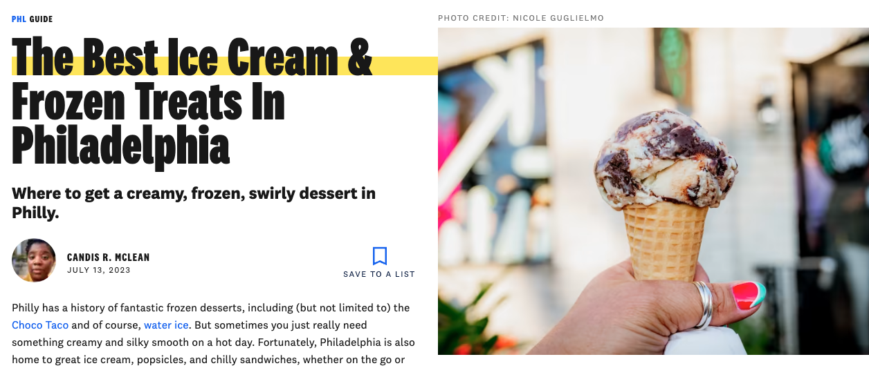 The Infatuation: The Best Ice Cream & Frozen Treats In Philadelphia Jul 13 Written By Milk Jawn “This small Passyunk Square ice cream shop is probably the most popular one in the neighborhood. And the crowds aren’t wrong—it’s f*cking delicious…” Milk Jawn